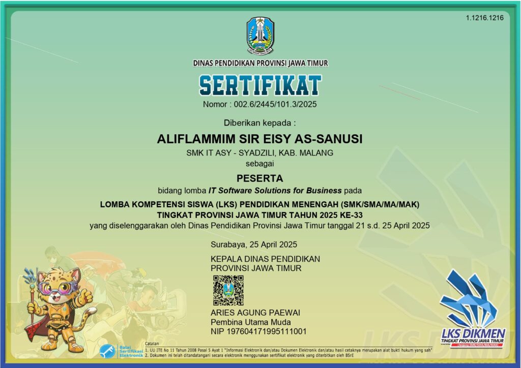 Hey there! I’m Aleep, a student at SMK IT Asy-Syadzili, an Islamic-integrated tech school that’s part of PPSQ Asy-Syadzili in Pakis, Malang(https://www.santripasir.id/).